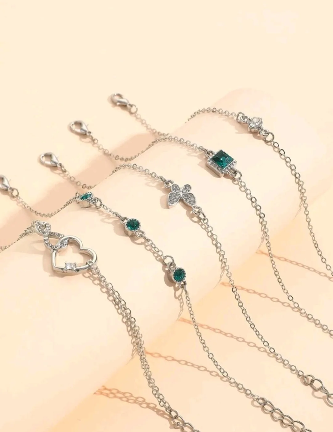 مجموعة اساور مع حجر اخضر ناعم