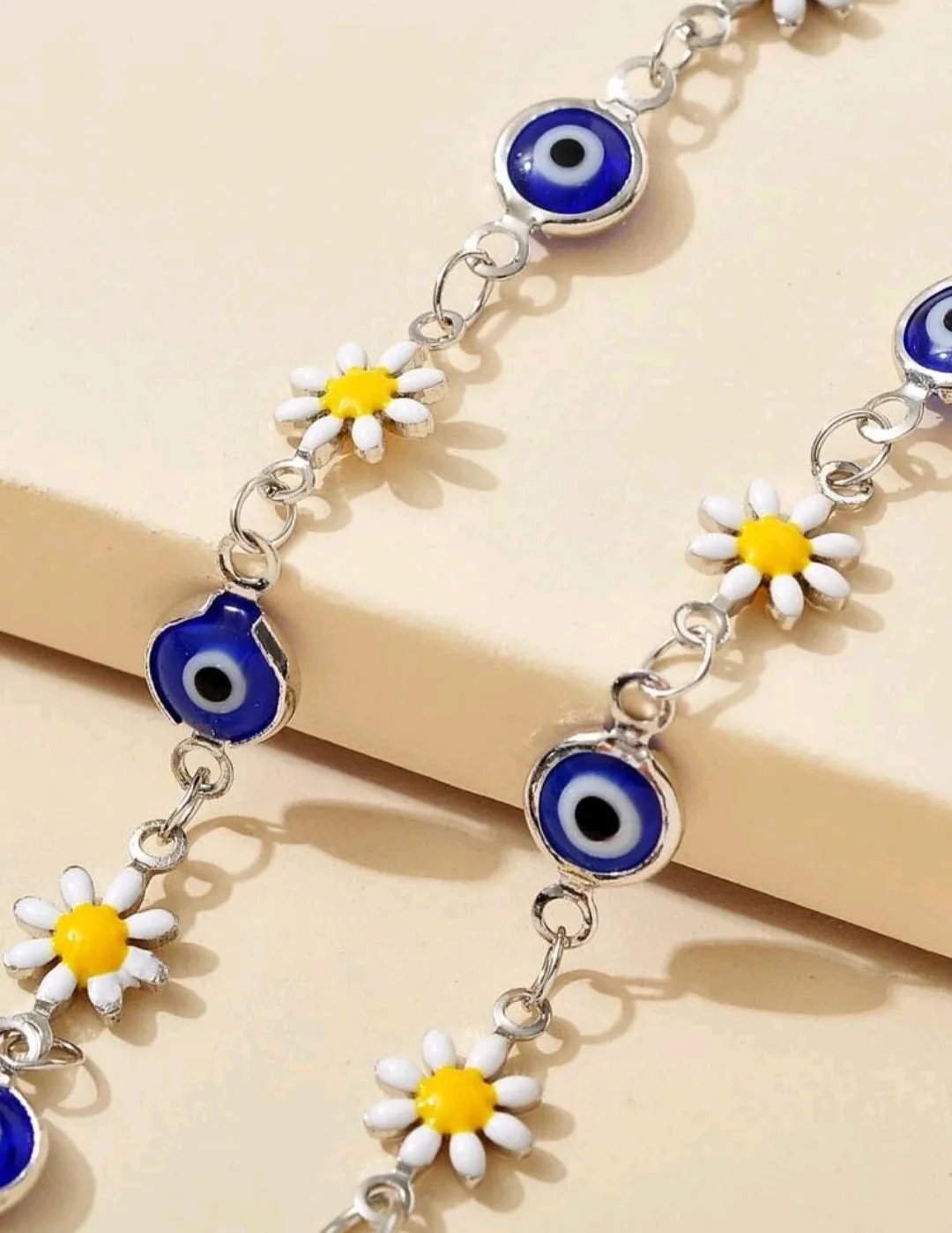 اسوارة وردات ملونة بالازرق والاصفر والأبيض