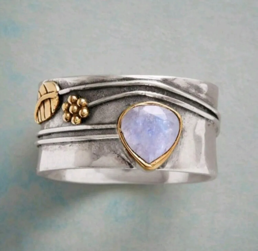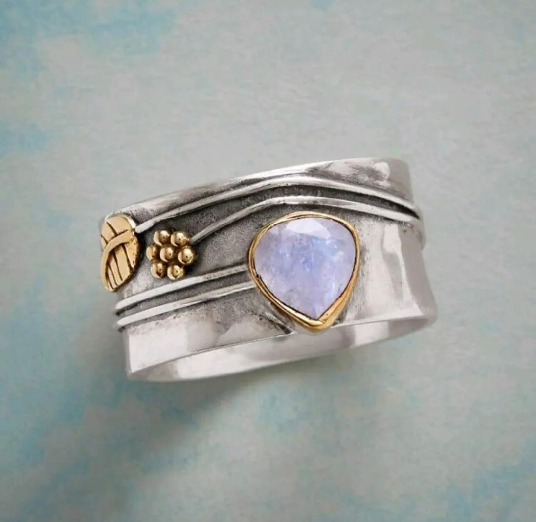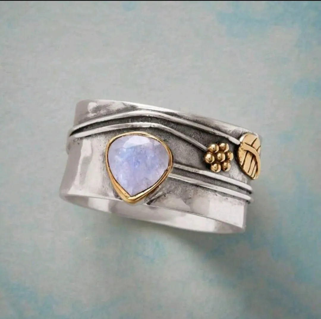 خاتم لون فضي عتيق مع اون ذهبي بسيط