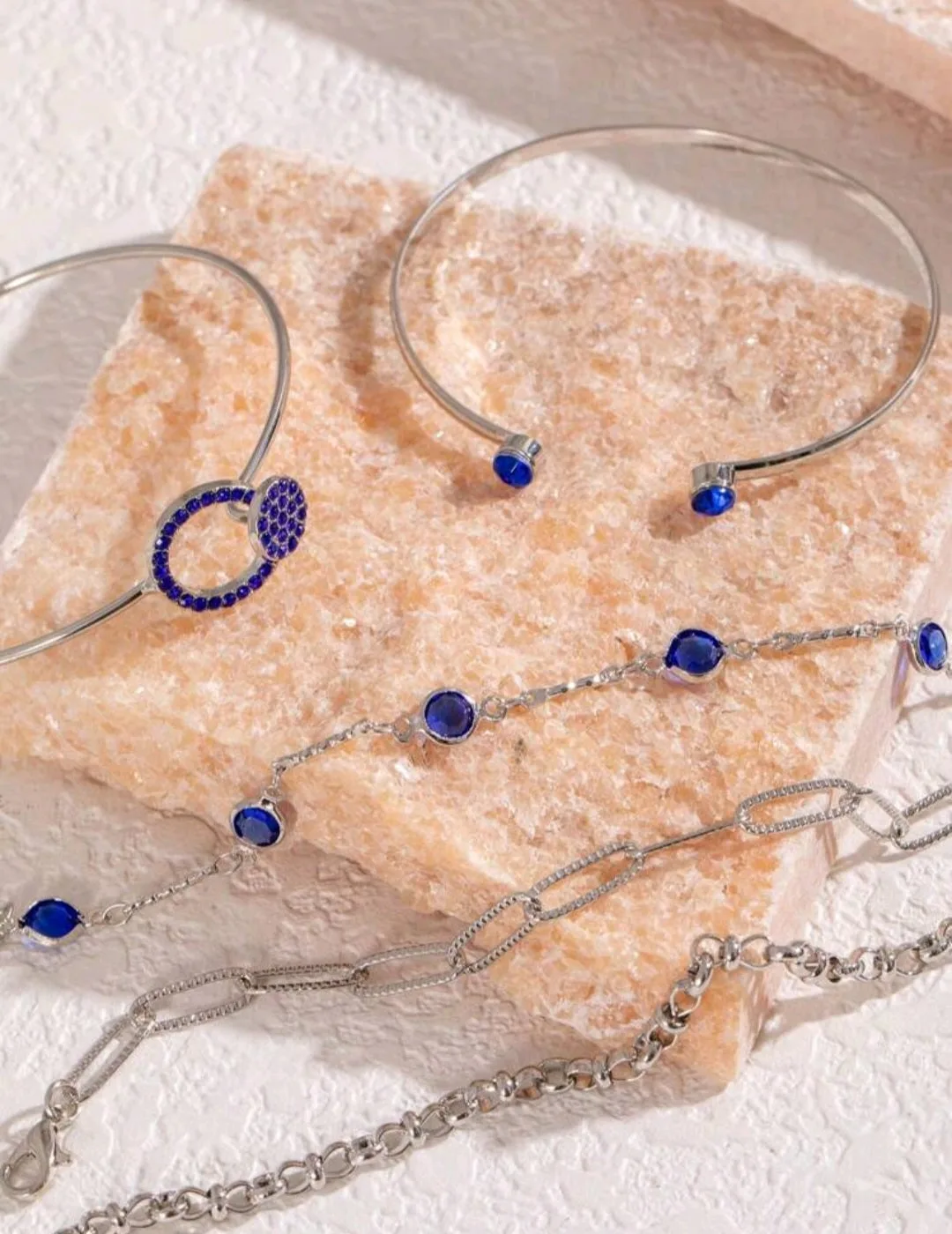 مجموعة اساور فضية مع حجر ازرق