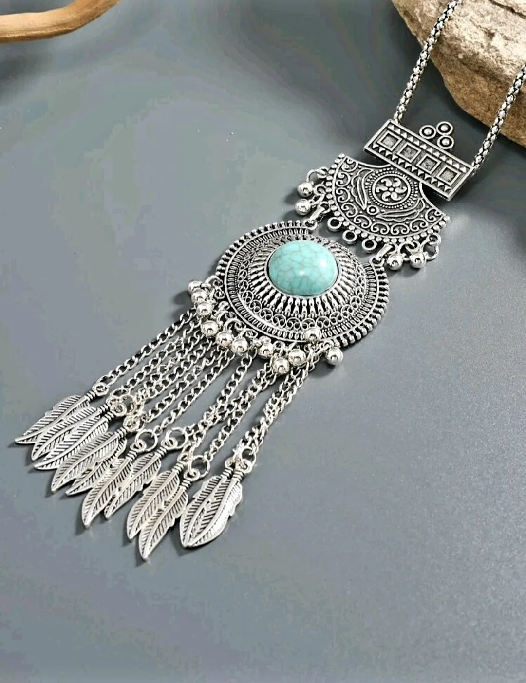 سنسال لون فضي عتيق مع حجر فيروزي