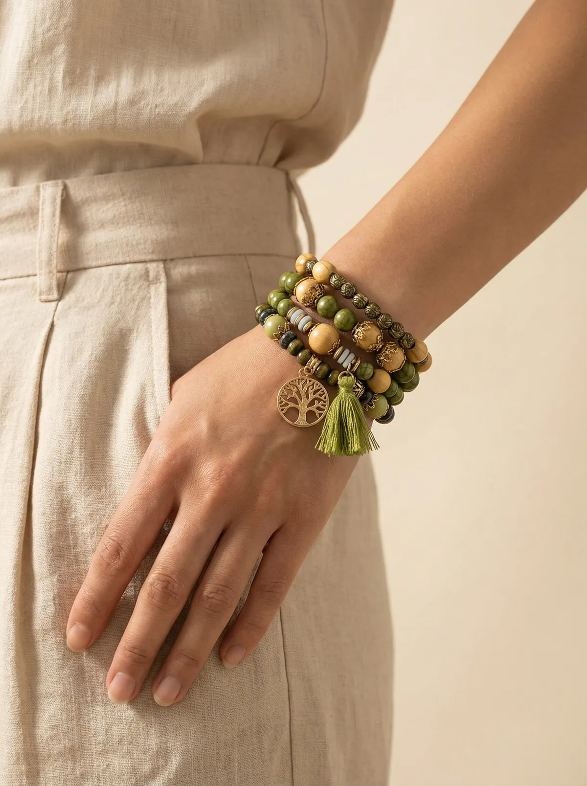 اسوارة حجر زيتي وخشب