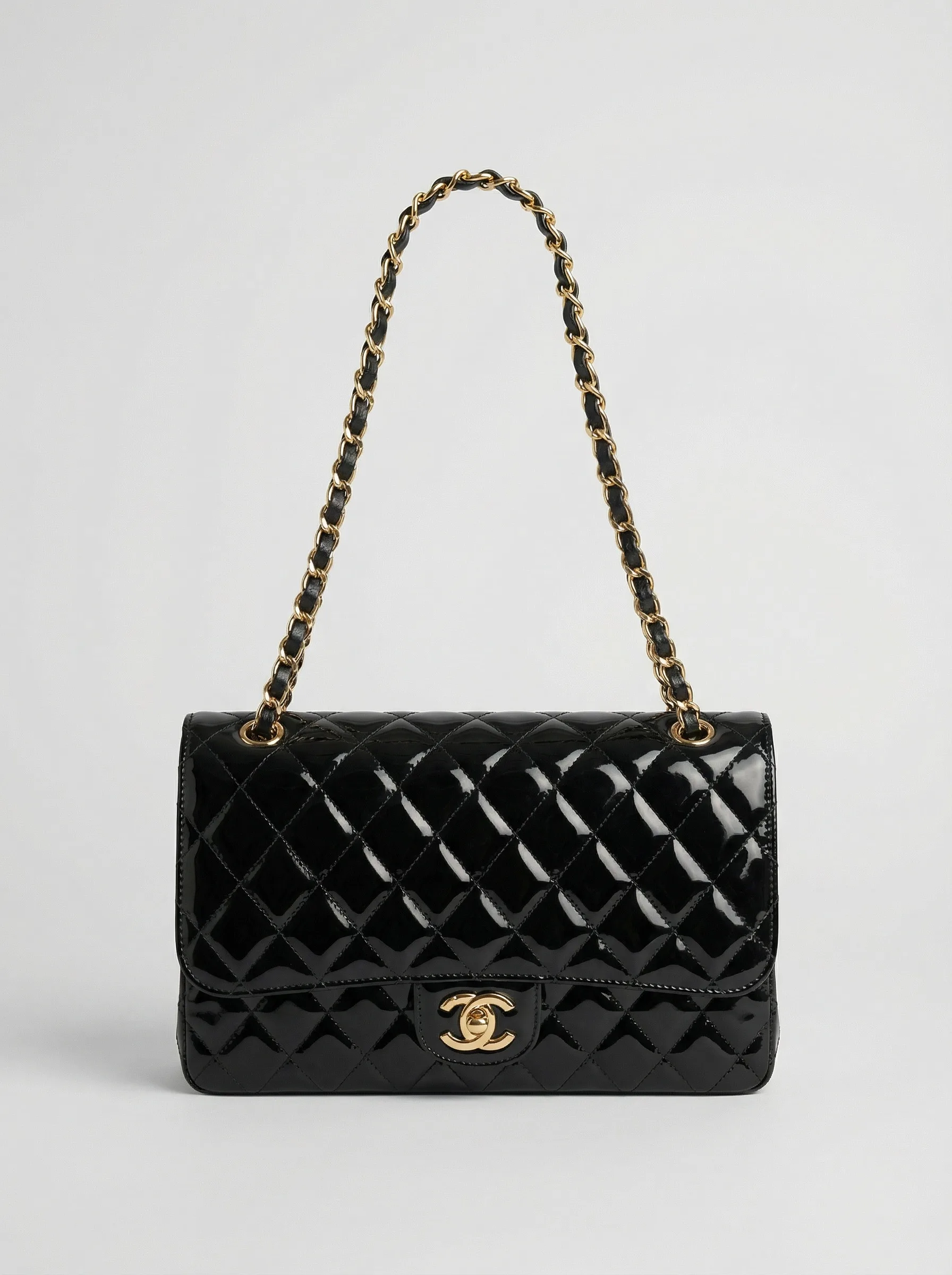 شنط حجم وسط لون اسود لمعة
