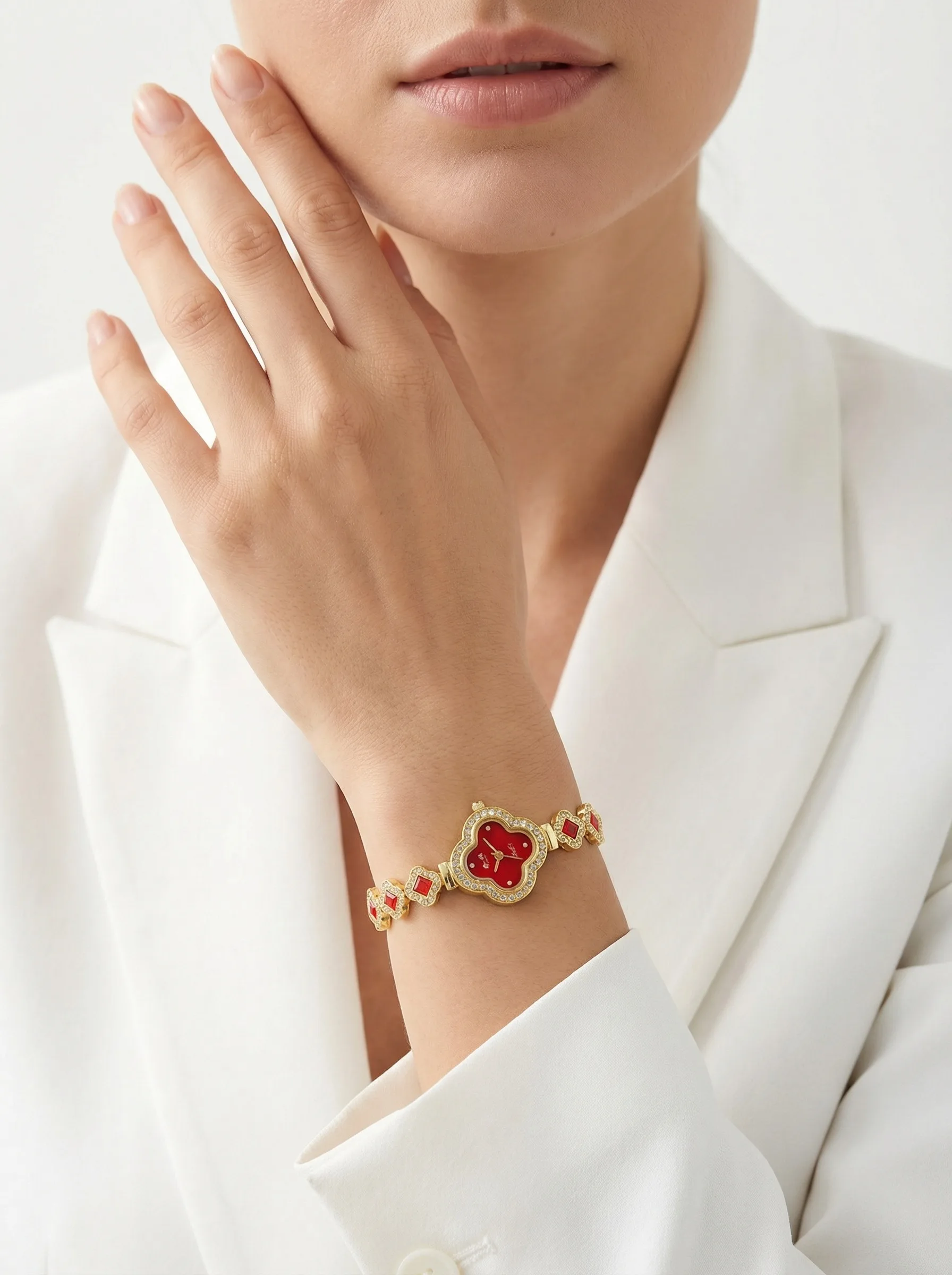 ساعة لون ذهبي مع احمر