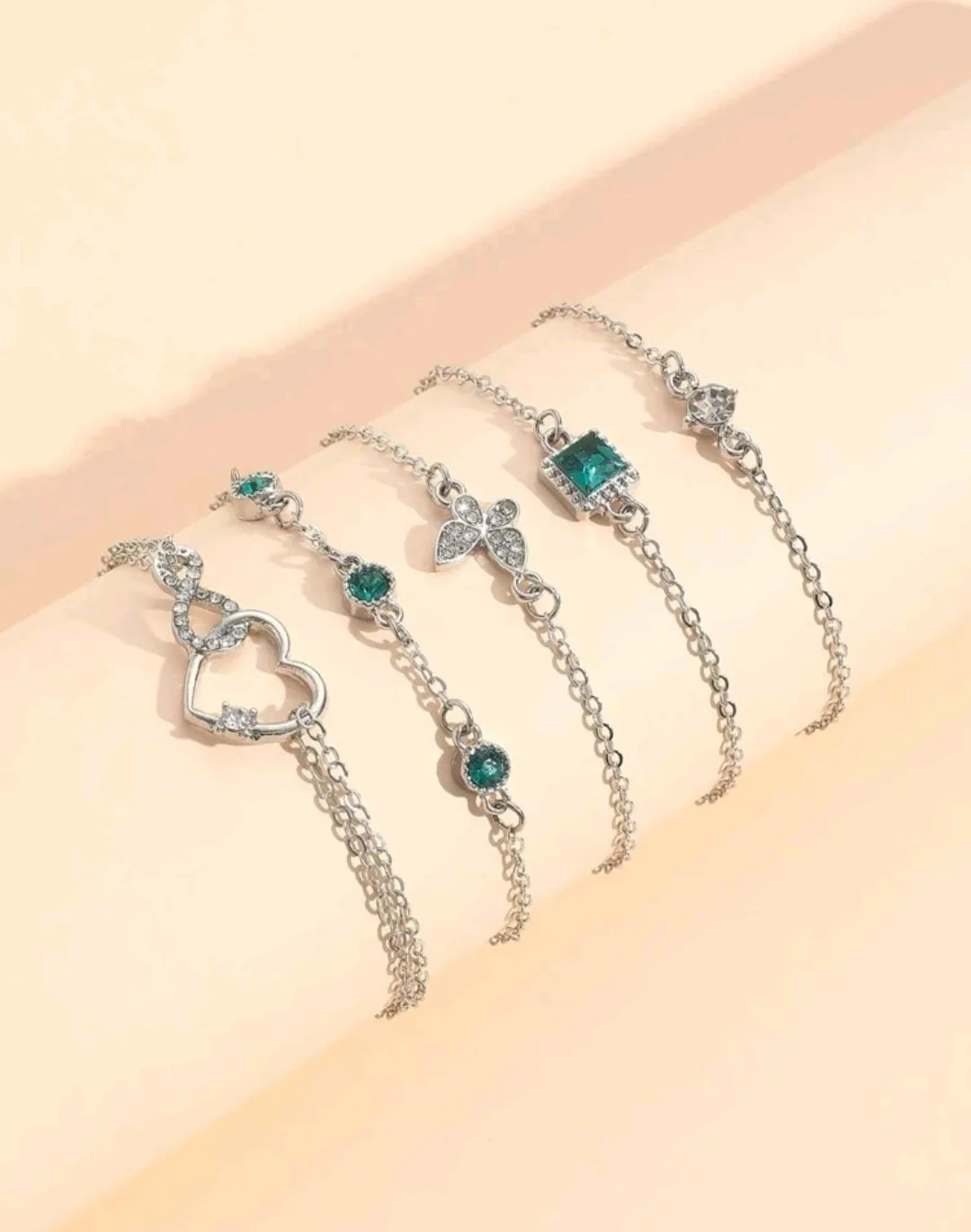 مجموعة اساور مع حجر اخضر ناعم