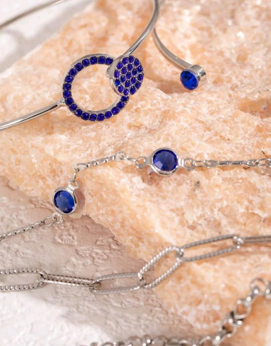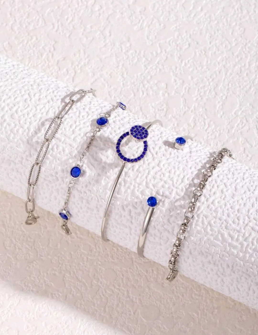 مجموعة اساور فضية مع حجر ازرق