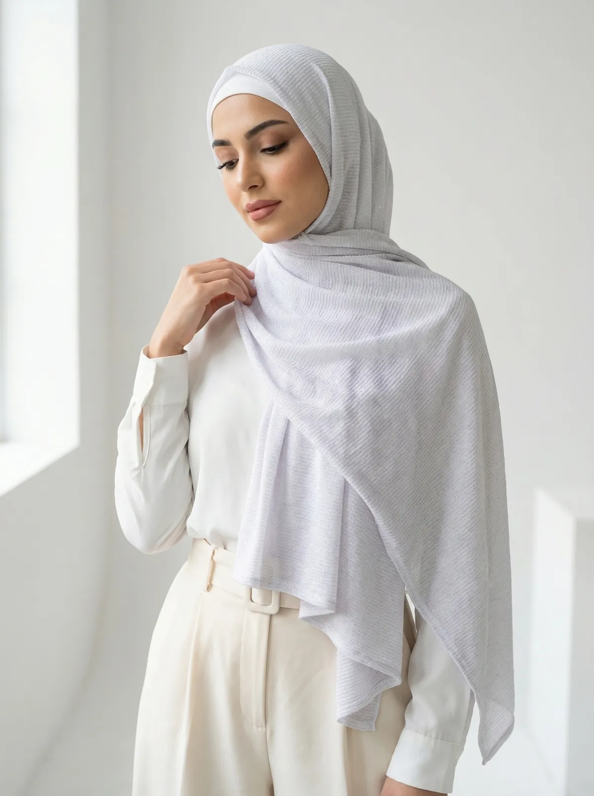 شال قطن لايكرا مقصب باللون الفضي