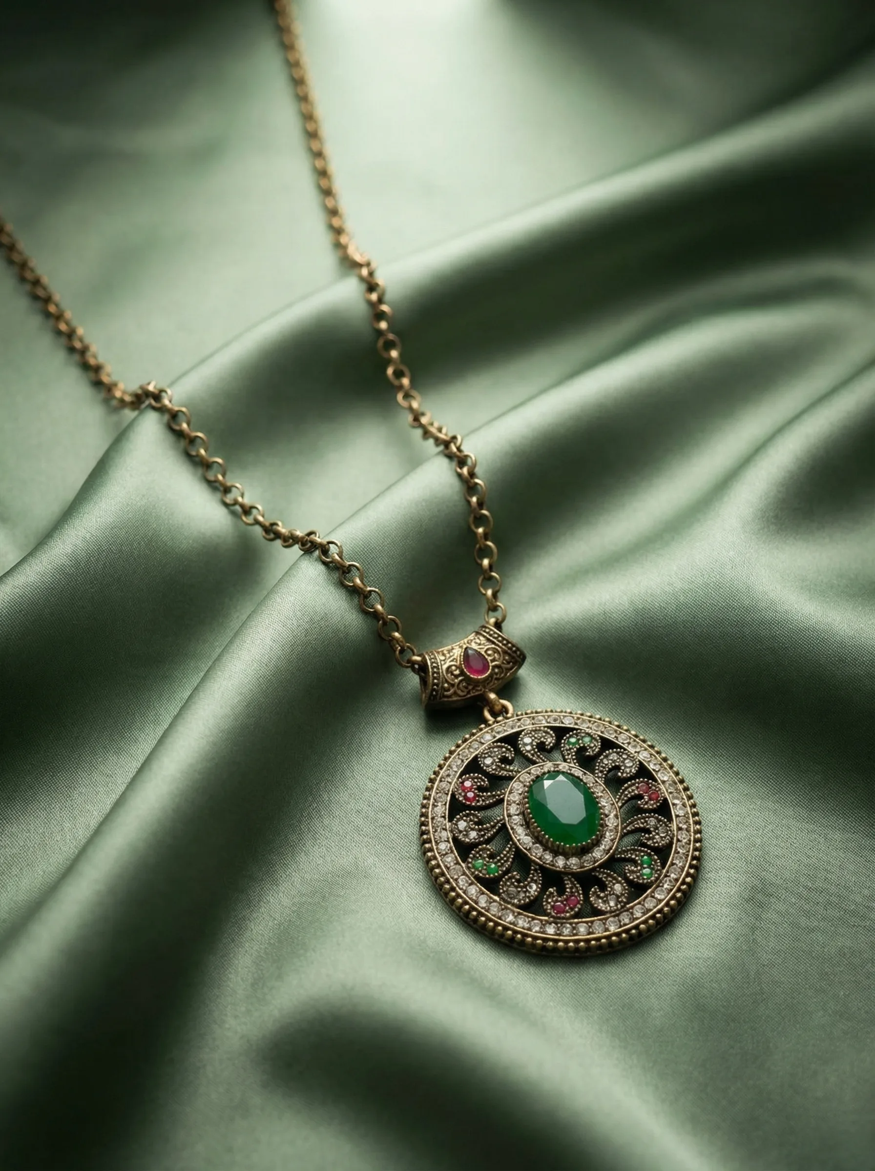 سنسال عتيق مع حجر باللون الاحمر والاخضر الزمردي
